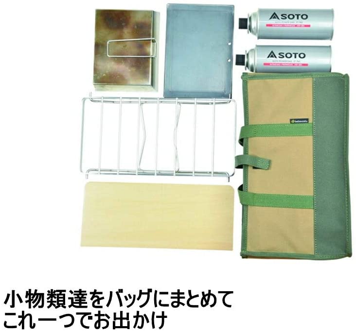 極厚鉄板やリッドパン(蓋)、ワイド五徳まで収納できるので、これひとつを持って出掛けることができます。普段使いにもお勧めです。