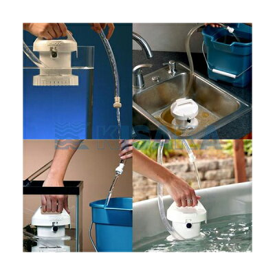 乾電池式のポータブルビルジポンプ"WaterBuster/ウォーターバスター"です。コードレスなので持ち運びにも便利です。ホース先端はオスネジになっており、品番630032~630034のガーデンホースアダプターを取付可能です。